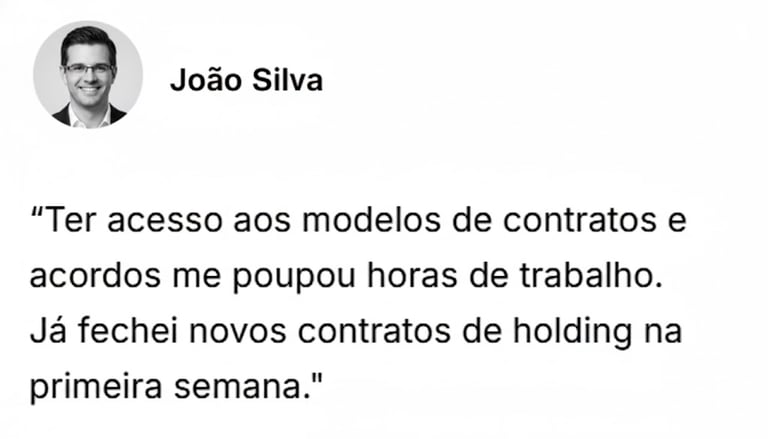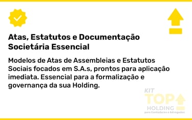 Obtenha acesso imediato a um arsenal de mais de 25 documentos prontos e eBooks exclusivos, desenvolvidos para simplificar e acelerar cada detalhe do processo de estruturação de Holdings.