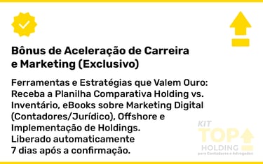 O Kit Top Holding foi desenvolvido especialmente para advogados e contadores que desejam se posicionar como especializados em holdings e começar a lucrar no promissor mercado das holdings familiares e patrimoniais. Ele também é ideal para empreendedores e profissionais que buscam aprofundar seus conhecimentos e dominar estratégias de planejamento sucessório e tributário.